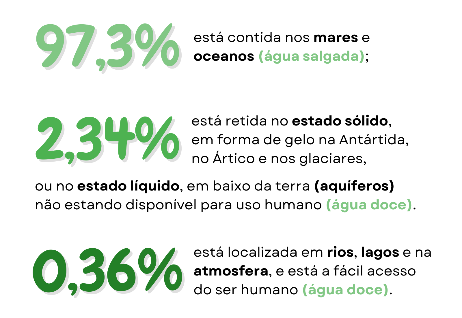 Cerca de 70% da superfície do nosso planeta é composta por água, porém apesar dessa alta percentagem, menos de 1% é própria para consumo.